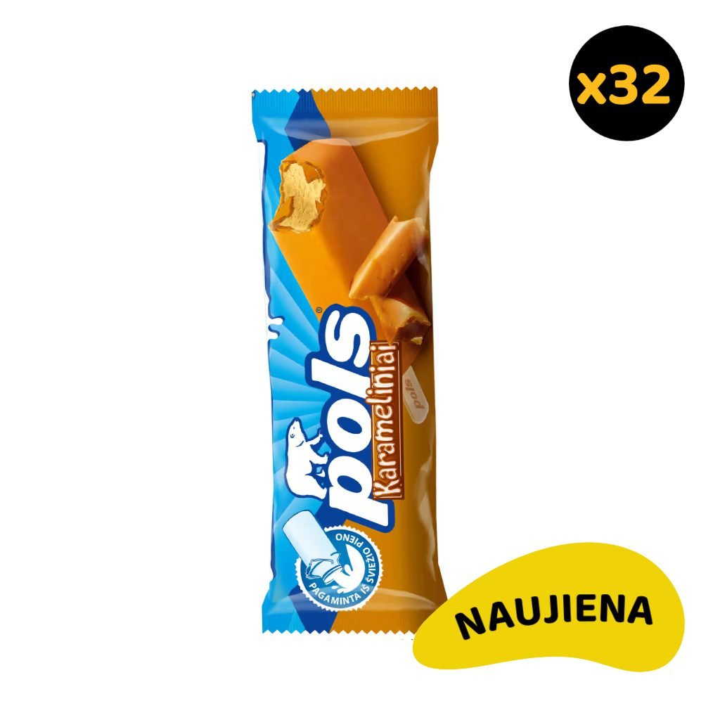 Kam tinka: Idealu 10-ties žmonių komandai savaitei Kas sudaro: Dėžutę sudaro 32 vnt. karamelinių ledų su karamelės skonio glaistu POLS Pakuotė: Gamintojo kartoninė dėžutė