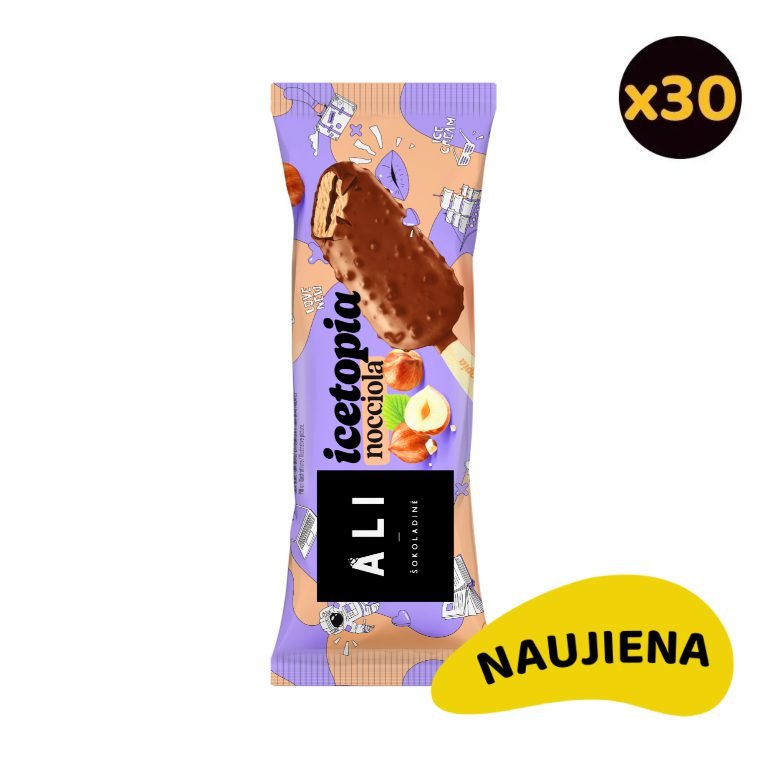 Kam tinka: Idealu 15-kos žmonių komandai savaitei Kas sudaro: Dėžutę sudaro 30 vnt. nocciola lazdyno riešutų sk. plombyras su lazdynų riešutų įd. ICETOPIA Pakuotė: Gamintojo kartoninė dėžutė